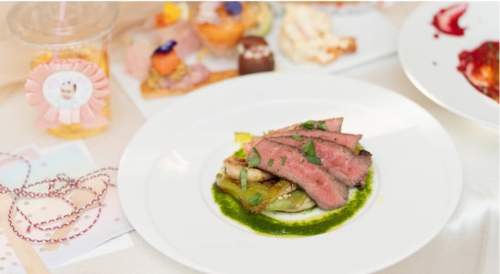 出張料理人によるコース料理に加え、写真映えするフィンガーフードなどもご用意し、ご提供。お食事を更に華やかにする空間演出として、季節のお花やバルーンで飾りつけ。加えて、お子さまとの記念写真を撮影するためのフォトブースを制作し、プロのカメラマンを手配し、かけがえのないひとときを写真データでも納品。